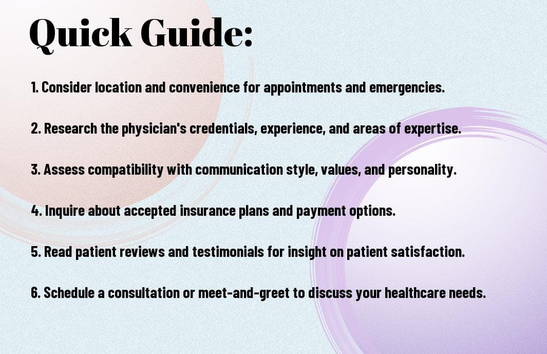 While choosing a primary care provider, several imperative factors should influence your decision-making process. These include the physician’s credentials, experience, communication style, and patient reviews. Assessing the provider’s approach to preventive care, chronic disease management, and referrals to specialists can also give you insight into their quality of care.