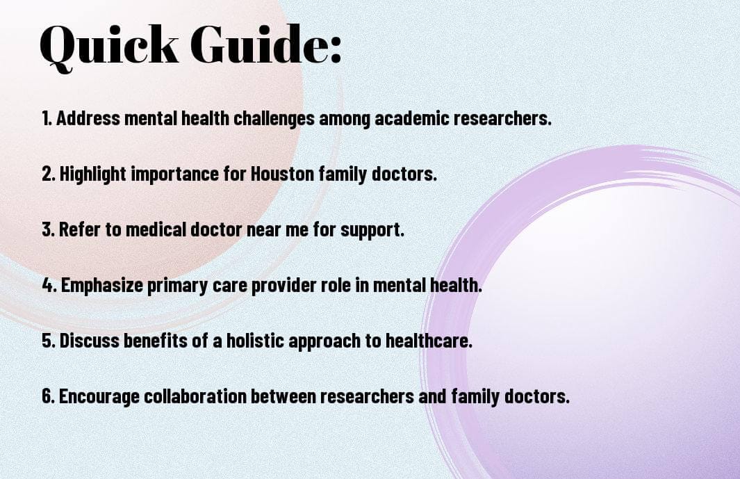 Tips for Houston Family Doctors on Providing Care: Houston Family Doctors play a vital role in supporting the mental health needs of academic researchers through early intervention and holistic care approaches.
